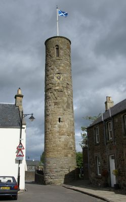 Der Turm enthält einen piktischen Symbolstein am Fundament und einen eisernen Pranger, der die mittelalterliche Rechtsprechung dokumentiert.