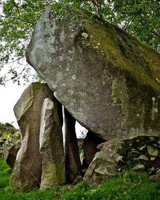 Das Goward-Dolmen weist eine Granitplatte von vier Metern Länge und drei Metern Breite auf, die sich in 4.3 Metern Höhe befindet.