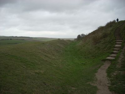 Die Anlage enthält die größte Wallburg in Sussex mit Minenschächten, die 12 Meter tief durch Kreideschichten reichen.