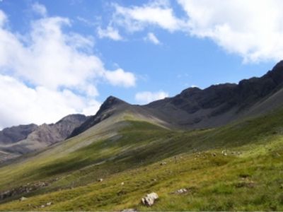Dieser Berg ist der einzige Munro in der Cuillin-Kette, der bei normalen Wetterbedingungen ohne Klettern mit Händen bestiegen werden kann.