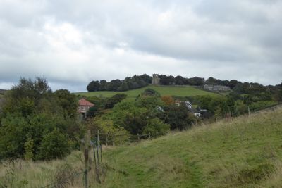 Die alte Siedlung weist zwei konzentrische Verteidigungsgräben auf einem Hügel mit Blick auf die Cheshire-Ebene auf.