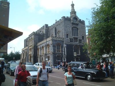 Das Norwich Guildhall ist ein mittelalterliches Verwaltungsgebäude mit einer markanten Fassade aus Flint und Stein, die in einem charakteristischen Schachbrettmuster angeordnet sind. Im Inneren finden sich mehrere Kammern und Räume, die verschiedenen Verwaltungs- und Gerichtsfunktionen dienten.