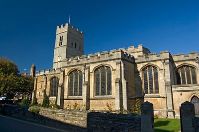 Die 1401 gegründete Kirche enthält Gedenktafeln bedeutender Persönlichkeiten, darunter William Bruges, erster Wappenkönig des Hosenbandordens.