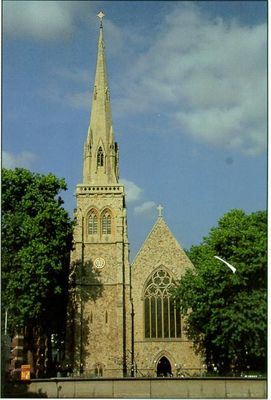 Die Steinkirche steht am nördlichen Ende des St George's Square, mit einem 52 Meter hohen Turm und detaillierten Buntglasfenstern.