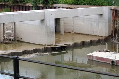 Das Wehr ist Teil eines industriellen Erbekorridors entlang des Flusses Lea, der moderne Wasserwirtschaft mit jahrhundertealter Mühlentradition verbindet.
