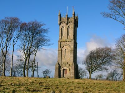 Der gotische Turm, für Besucher geschlossen, enthält eine Wendeltreppe, die zu einer Aussichtsplattform mit Blick über South Ayrshire führt.