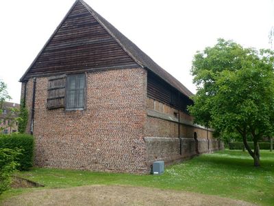 Die Scheune wurde Anfang des 16. Jahrhunderts erbaut und lagerte landwirtschaftliche Erzeugnisse für die Sankt-Augustinus-Abtei bis zur Klosterauflösung.