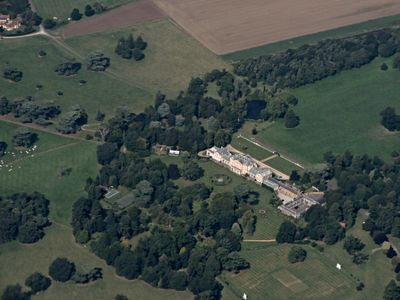 Southill Park ist ein herrschaftliches Landhaus mit Kalksteinfassade und ausgedehnten Gartenanlagen, die ein großes Wasserbecken und Waldlandschaften umfassen. Das Anwesen erstreckt sich über ein großes Gelände mit seitlichen Flügeln und bietet eine komplexe Architektur aus verschiedenen Bauphasen.