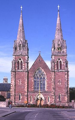 St Peter's ist eine Kirche der Kategorie A mit zwei quadratischen Türmen und einer gotischen Westfassade mit Spitzbögen. Das Eingangstor wird von einem vierfach unterteilten Buntglasfenster bekrönt und das Innere wird durch einen Marmor-Altar geprägt.