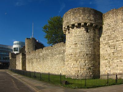 Town wall: section from 75yds E of Arundel Tower to limit of castle site including Arundel and Catchcold Towers, city walls in Southampton, UK