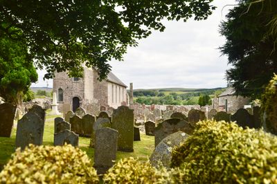 Bewcastle Roman fort, high cross shaft in St Cuthbert's churchyard, and Bew Castle medieval shell keep castle