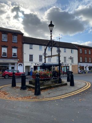 The Sebastopol Cannon Including Lamp Arch, Supporting Plinth And Iron Posts With Chains Surrounding It, cannon in Bassetlaw, Nottinghamshire, UK