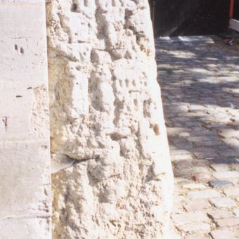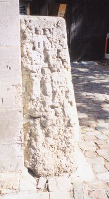 Stone on the east corner of Magdalen Tower, in the High Street, Grade II listed milestone in Oxford, Oxfordshire, UK