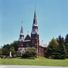 Die Abteikathedrale zeigt neugotische Architektur mit zwei asymmetrischen Türmen und einem steilen Ziegeldach.