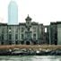 Die Granitstruktur weist einen zentralen Spitzbogeneingang, Zinnen und zwei zusätzliche Flügel auf, die sich vom dreistöckigen Hauptgebäude erstrecken.