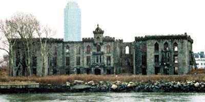 Smallpox Hospital, Neugotische Krankenhausruine auf Roosevelt Island, Vereinigte Staaten.