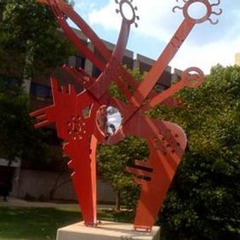 Happy-Go-Luckies of Nature and Technology ist eine Stahlskulptur in Milwaukee, die aus verschweißten Metallformen besteht, die organische und mechanische Strukturen verbinden. Die Komposition nutzt die Materialqualitäten von Stahl, um eine visuelle Spannung zwischen natürlichen Linien und industriellem Design zu erzeugen.