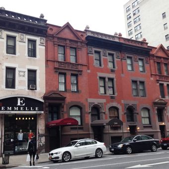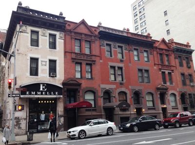 Sechs Reihenhäuser im nordischen Renaissancestil mit roten Backstein-, Sandstein- und Terrakottafassaden säumen die Lexington Avenue.