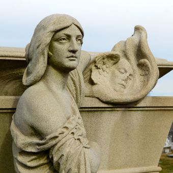 Der Laurel Hill Friedhof erstreckt sich über 30 Hektar mit Blick auf den Schuylkill River und verfügt über Marmormonumente, Granitmausoleen und 6.000 Bäume.