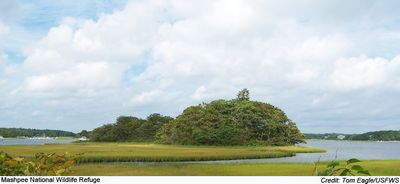 Das Mashpee National Wildlife Refuge ist ein großes Schutzgebiet mit Salzwiesen, Seen, Wäldern und Mooren, die von der Waquoit Bay durchschnitten werden. Das Gelände umfasst verschiedene Lebensräume wie Zedernmoore und Moosbeeren-Anbauflächen, die zusammen ein vielfältiges Naturgebiet bilden.