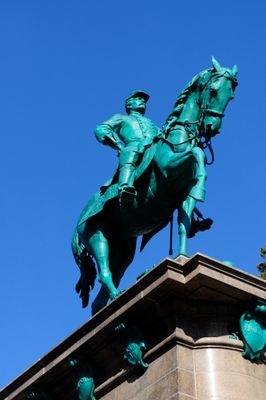 Die Bronzestatue erhebt sich 4,1 Meter auf einem Granitsockel und zeigt General McClellan in Militäruniform auf einem Pferd.