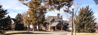 Das Gebäude enthält Kamine mit Steinen vom Crazy Horse Memorial und Außenmauerwerk aus Miller, South Dakota.