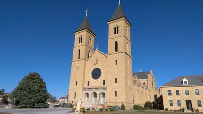 Die Basilika St. Fidelis ist 67 Meter lang, verfügt über Zwillingstürme und verwendet einheimischen Kalkstein, Indiana-Kalkstein und Vermont-Marmor.