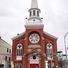 Die Sankt-Stephans-Kirche steht an der Kreuzung von fünf Straßen im Ironbound-Viertel, mit äußeren Medaillons und romanischen Architekturelementen.