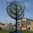 Der Tree of Life ist eine Stahlskulptur aus bemalten Komponenten, die organische Formen und Naturelemente darstellt. Die Struktur besteht aus mehreren verbundenen Teilen, die zusammen eine große, dynamische Komposition bilden.