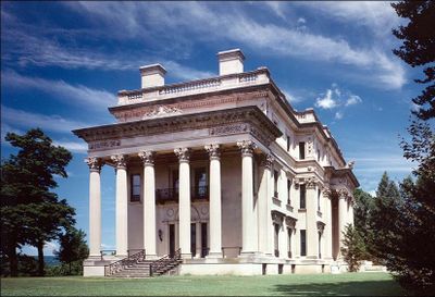 Das Vanderbilt Herrenhaus verfügt über Kalkstein-Außenwände mit Säulen an allen vier Seiten und erstreckt sich über 54 Räume im klassischen Stil.