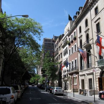 Das Upper East Side Historic District erstreckt sich zwischen der 59. und 78. Straße entlang der Funften Avenue und zeigt Wohngebaude aus verschiedenen Bauepochen, von Gründerzeitbauten bis zu modernen Wohnhausern. Die Gegend ist geprägt durch breite Straßenzüge, gepflegte Fassaden und grüne Parks, die das Bild eines wohlhabenden Wohnviertels prägen.