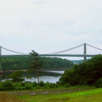 Die 1931 für 846.000 Dollar errichtete Struktur war die erste Hängebrücke mit großer Spannweite in Maine und die erste permanente Flussquerung flussabwärts von Bangor.