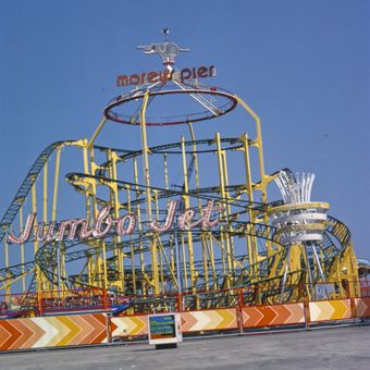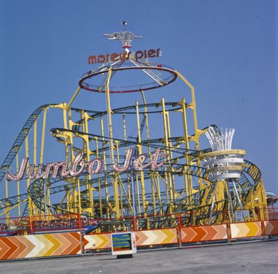 Die Jumbo Jet zeigte den technologischen Fortschritt im Achterbahndesign mit ihrem elektrischen Spiralliftsystem.