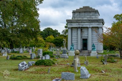 Der Elmwood Friedhof erstreckt sich über 20 Hektar Land mit zahlreichen Monumenten, Mausoleen und Gräbern entlang gewundener Pfade.