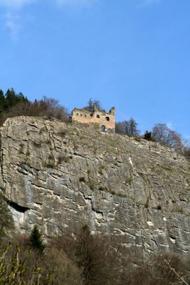 Burg Lichtenstein ist eine Burgruine auf einem schmalen Bergrücken in der Nähe von Chur, die aus massiven Steinmauern mit einfachem Innenhofaufbau besteht. Die Mauern sind beeindruckend erhalten geblieben, obwohl die Struktur seit Jahrhunderten nicht mehr bewohnt wird.