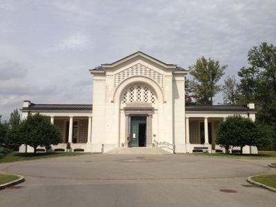 Kapelle des Trostengels, Kapelle und Krematorium auf dem Friedhof Saint-Georges in Genf, Schweiz