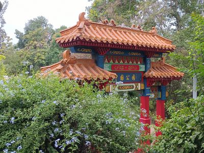 Der Chinesische Garten in Santiago ist eine Grünfläche im südlichen Teil des O'Higgins-Parks mit Zierbrücken, Wasserspielen mit Koi-Fischen und traditionellen chinesischen Pavillons. Gewundene Wege führen Besucher durch sorgfältig gestaltete Bereiche mit Pflanzen und Wasser.