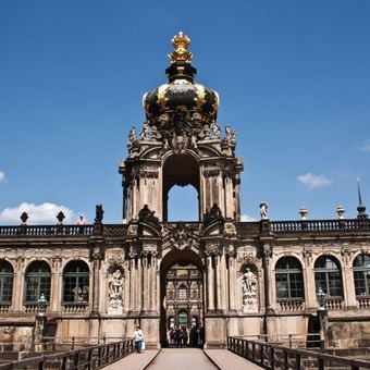 Das Kronentor bietet Zugang zum Zwingerinnenhof, wo Besucher mehrere Museen mit Porzellansammlungen und wissenschaftlichen Instrumenten betreten können.