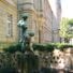 Der Neckereibrunnen zeigt eine Bronzeskulptur mit zwei Knaben, wobei der ältere dem jüngeren Wasser aus einem Gefäß in den Mund gießt.