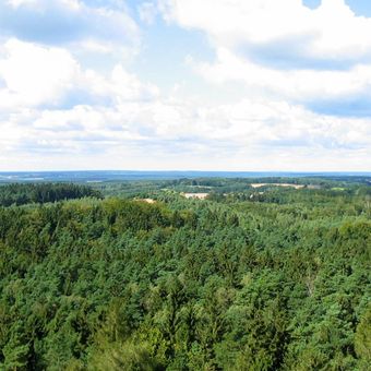 Mischwälder bedecken den Höhenzug mit zahlreichen Wanderwegen zum Hauptgipfel, wo Besucher die Aussichtsplattform nutzen können.