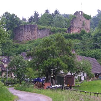 Die Burg wurde Ende des 12. Jahrhunderts erbaut und diente als Ganerbenburg für mehrere Adelige, bis französische Truppen sie 1668 zerstörten.