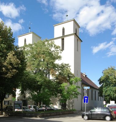 Die Kirche, 1929 unter der Leitung des Architekten Carl Anton Meckel fertiggestellt, gilt als eines der ersten religiösen Gebäude aus reinem Sichtbeton.
