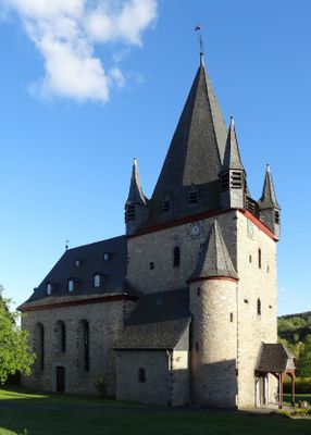 St. Michaelis Oberkleen ist eine Barockkirche in Langgöns mit Steinmauern und einem spätgotischen Wehrtürm, der vier kleine Ecktürmchen hat. Das Gebäude zeigt eine Mischung aus verschiedenen Baustilen, die über Jahrhunderte entstanden ist.