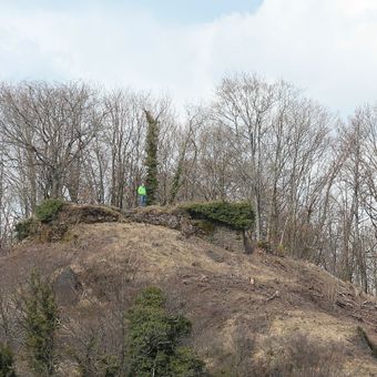 Die Burgruine steht auf 500 Metern Höhe und zeigt quadratische Mauern von 12 Metern Seitenlänge mit Abschnitten bis zu 3 Metern Höhe.