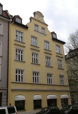 Mietshaus, viergeschossiger Neurenaissancebau mit geschweiftem Zwerchgiebel und Stuckgliederung, 1899–1900 von Georg Müller (Bildhauer).