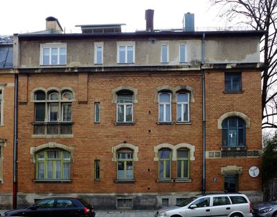 Villenartiger Bau, neurenaissance, Rohbackstein, Ende 19. Jahrhundert; Block mit dem gleichartigen Nr. 24.