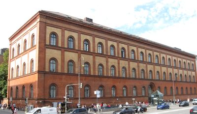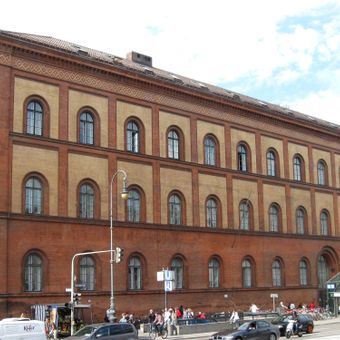 Ehem. Bergwerks- und Salinen-Administration, jetzt Teil der Ludwig-Maximilians-Universität, dreigeschossiger, langgestreckter Eckbau mit farbiger, Terrakotta verblendeter Fassade, ein Hauptwerk von Friedrich von Gärtner, 1838–1843, Wiederaufbau 1949–1959; anschließend Mauer an der Schellingstraße, gleichzeitig.