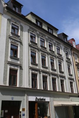 Mietshaus, reich gegliedert in klassizistischer Neurenaissance, um 1870; gleichartig wie Nr. 11.