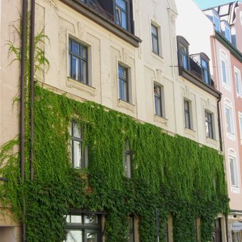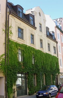 Mietshaus, neubarock, mit Zwerchgiebel, reich gegliedert und stuckiert, um 1900.