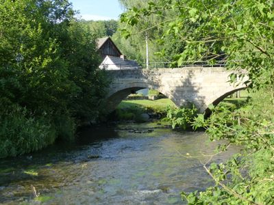 Brücke über den Weißen Main, sandsteinquaderbau, zweijochig, bezeichnet „1841“